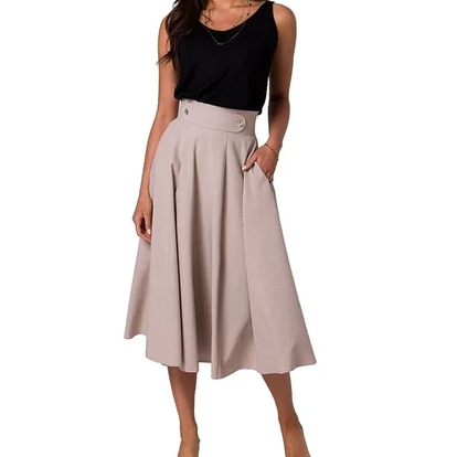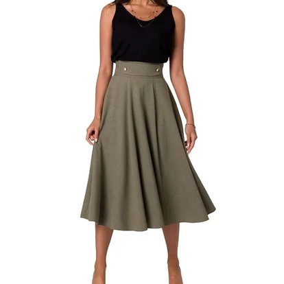 Ausgestellter Midirock mit hoher Taille und Zierknöpfen. Rock mit verdecktem Reißverschluss.
