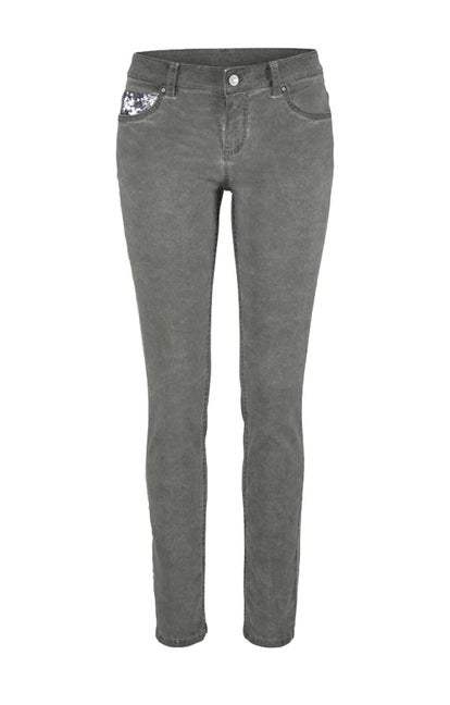 Rockiger Style mit Glam-Details! Stylishe Slim-Fit-Jeans von Zabaione in trendigem Oil-dyed-Färbeverfahren. Angesagter Five-Pocket-Stil mit kontrastierender Pailletten-Zierstickerei auf der Münztasche. Angesetzter, geknöpfter Gürtelschlaufenbund und verdeckter Reißverschluss. Logo-Details und Leder-Logoaufnäher hinten am Bund. Beinschrittlänge ca. 80 cm. Elastische Denim-Qualität aus 98% Baumwolle/2% Elasthan.