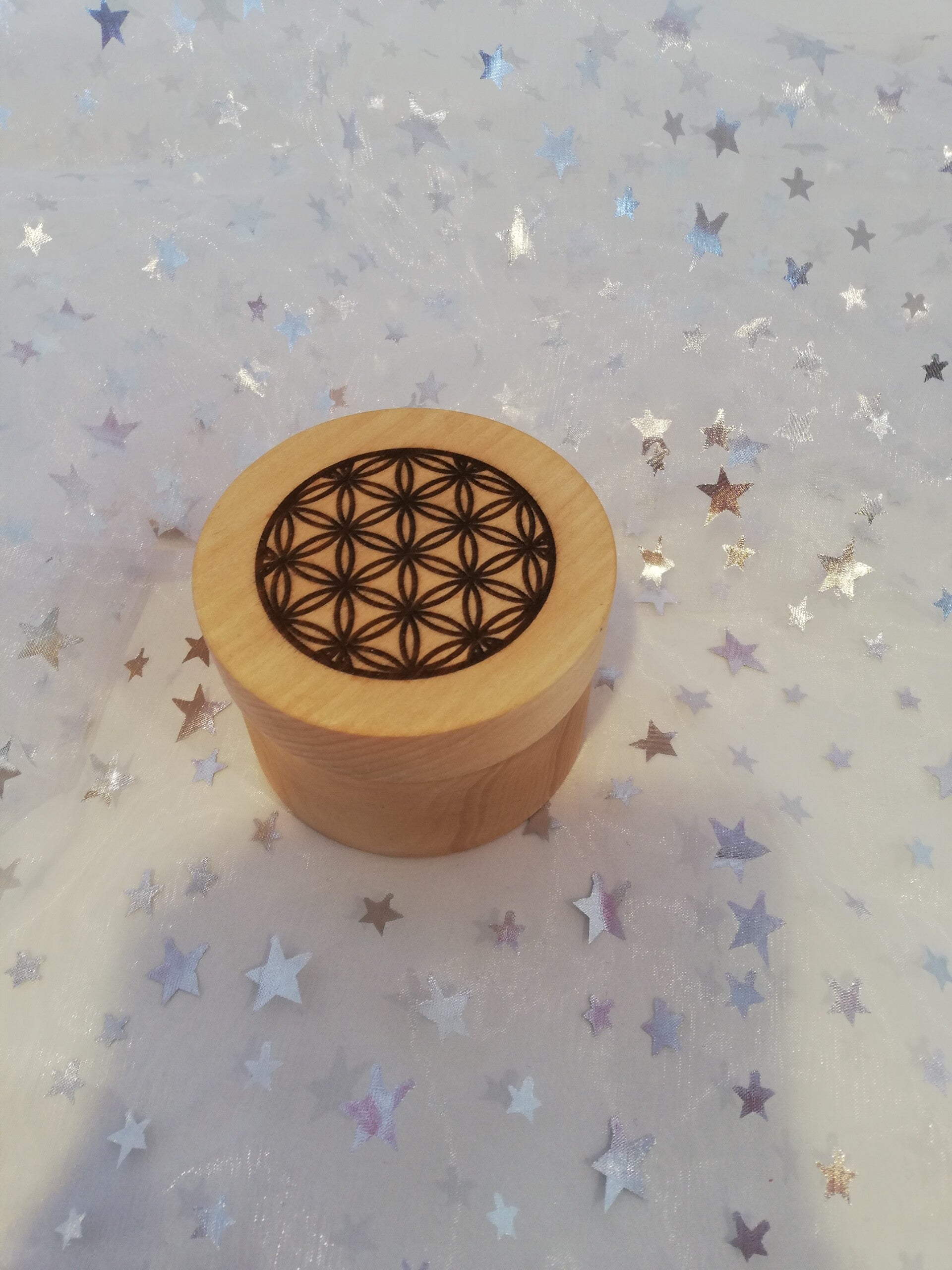 Schöne edle gravierte Dose mit der Blume des Lebens.