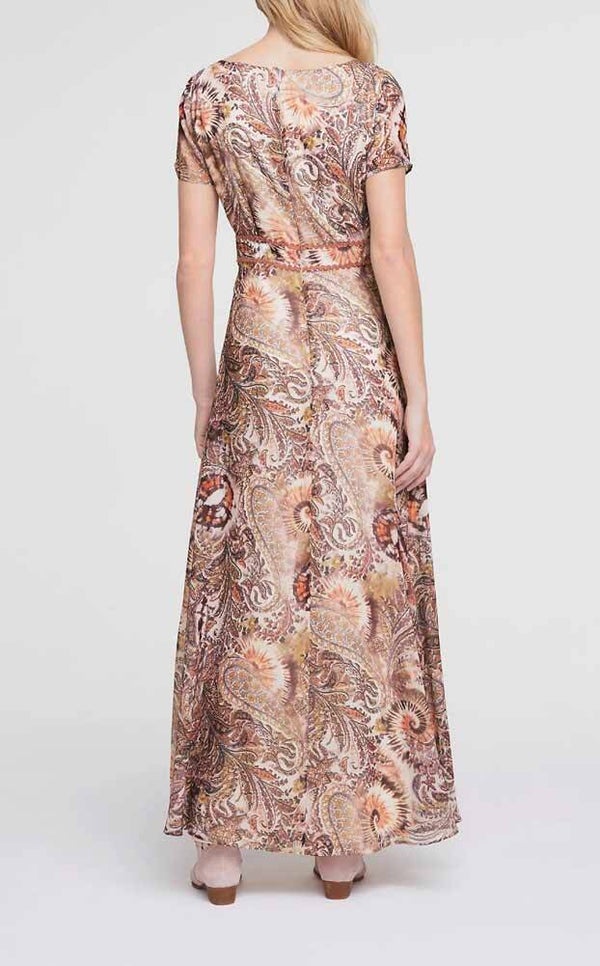 Raus aus dem Alltag, rein in das schöne Freizeitleben mit diesem attraktiven Maxikleid von Heine. Das Dress präsentiert sich als erfrischendes Offtime-Piece mit effektvollem Allover-Mustermix und raffinierten Details. Eng anliegendes Oberteil mit klassischem Rundhalsausschnitt, leicht transparenten, kurzen Ärmeln und formgebenden Brustabnähern sowie Taillenpasse mit kontrastierendem, gewelltem Zierband-Besatz. Nahtfeiner Reißverschluss hinten. Der leicht ausgestellte-Rockteil unterstreicht gekonnt die tolle Optik. Länge ca. 144 cm