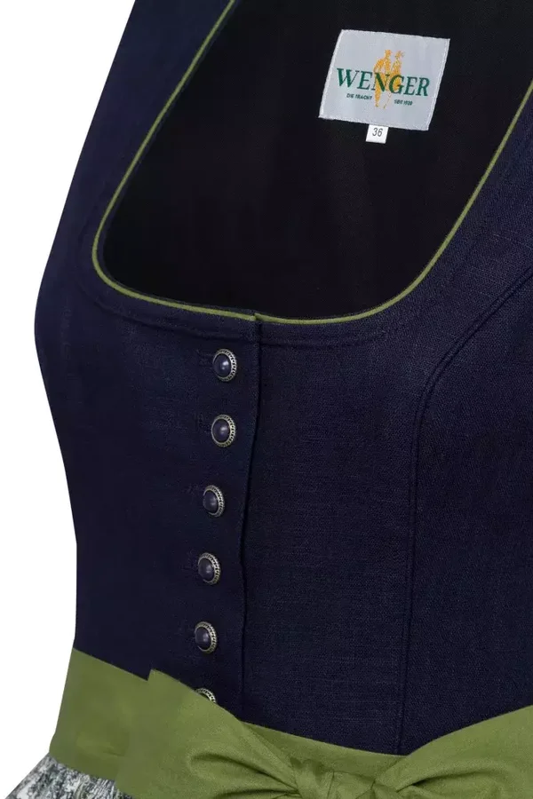 Traditionelle Grün- und Blautöne treffen raffinierte Details: Bei Emma ist das Leinenoberteil mit einer Doppelpaspel am Ausschnitt und der Rücken mit einem schönen Biesenmuster verziert.