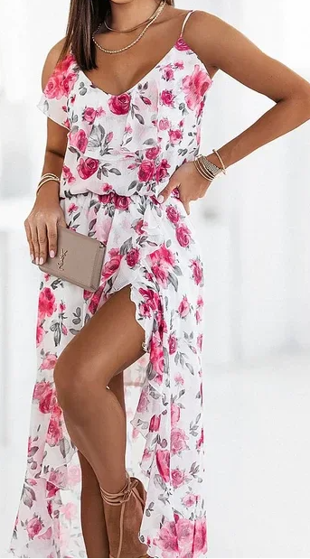 Entscheiden Sie sich für Individualität und Weiblichkeit mit einer neuen Version unseres meistverkauften Chiffonkleides! Flowers ist aus zartem, leichtem Chiffon mit wunderschönen Blumen gefertigt. Wir haben lange an seinem Schnitt gearbeitet, weshalb es sich perfekt an die Figur anschmiegt und die zahlreichen Rüschen bei Bewegung spektakulär aussehen. Die schmalen, verstellbaren Träger und der Rundhalsausschnitt setzen Hals, Schlüsselbeine und Schultern gekonnt in Szene. Der elastische Bund sorgt für einen perfekten Sitz des Kleides und verleiht der gesamten Silhouette die richtigen Proportionen. Das Unterteil mit asymmetrischen Rüschen verschlankt die Beine.