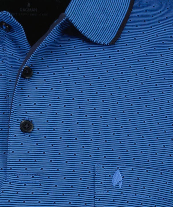 RAGMAN kurzarm Poloshirt fein gemustert Softknit