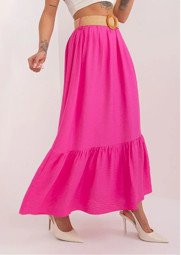 Der lässige Rock ist ein Must-Have für den Alltag. Sein unifarbenes Muster dominiert und verleiht ihm einen subtilen Charme. Der Rock besteht hauptsächlich aus Viskose und bietet eine bequeme Passform und einen leichten Stoff, ideal für lange Tage voller Aktivität. Seine maximale Länge verleiht ihm Eleganz und macht ihn angenehm zu tragen. Ohne Verschluss sieht der Rock sehr modern und lässig aus. Außerdem ist er mit einem mehrlagigen Gürtel praktisch und leicht zu verstellen. Dieser Rock ist die ideale Wahl für alle, die Komfort und Stil in ihrem täglichen Styling schätzen.
