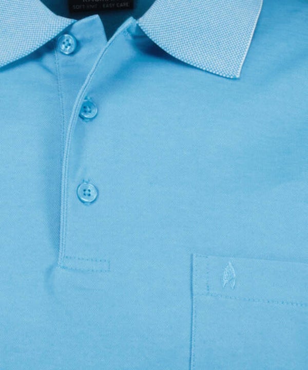 Gerade geschnittenes Herren Polo-Shirt. Polokragen mit Knopfleiste mit drei Knöpfen. Brusttasche mit kleiner Logo-Stickerei