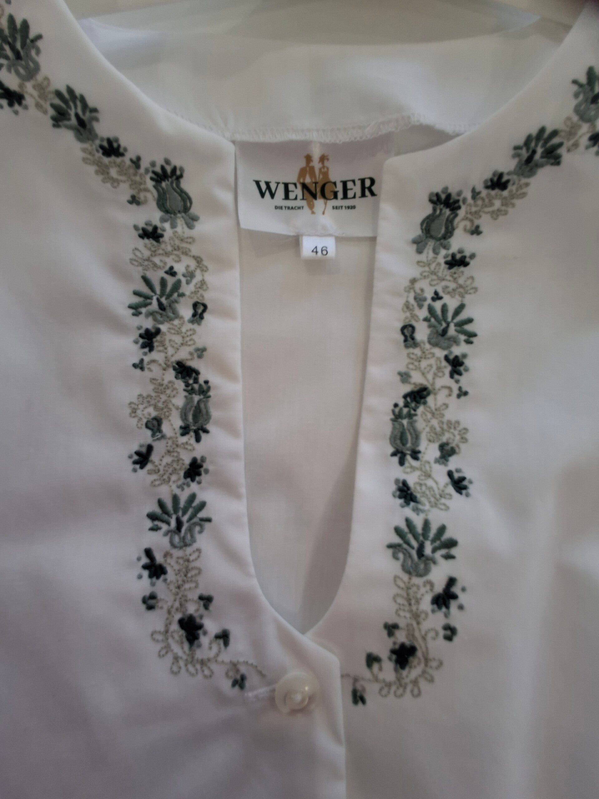 Sehr edle Wenger Dirndlbluse mit Stickerei.